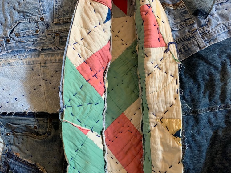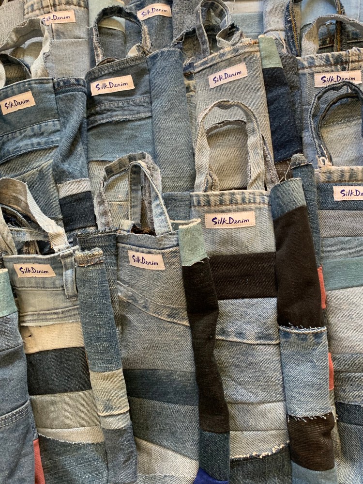 The upcycling came through a business with my daughter, Sarah, where we deconstruct and recycle denim. Working at SilkDenim informed my understanding of the detrimental fast-fashion industry and the need to rethink society’s current throw-away actions. To that end, Sarah and I recycled obsolete textiles into lifetime-guaranteed quality products.