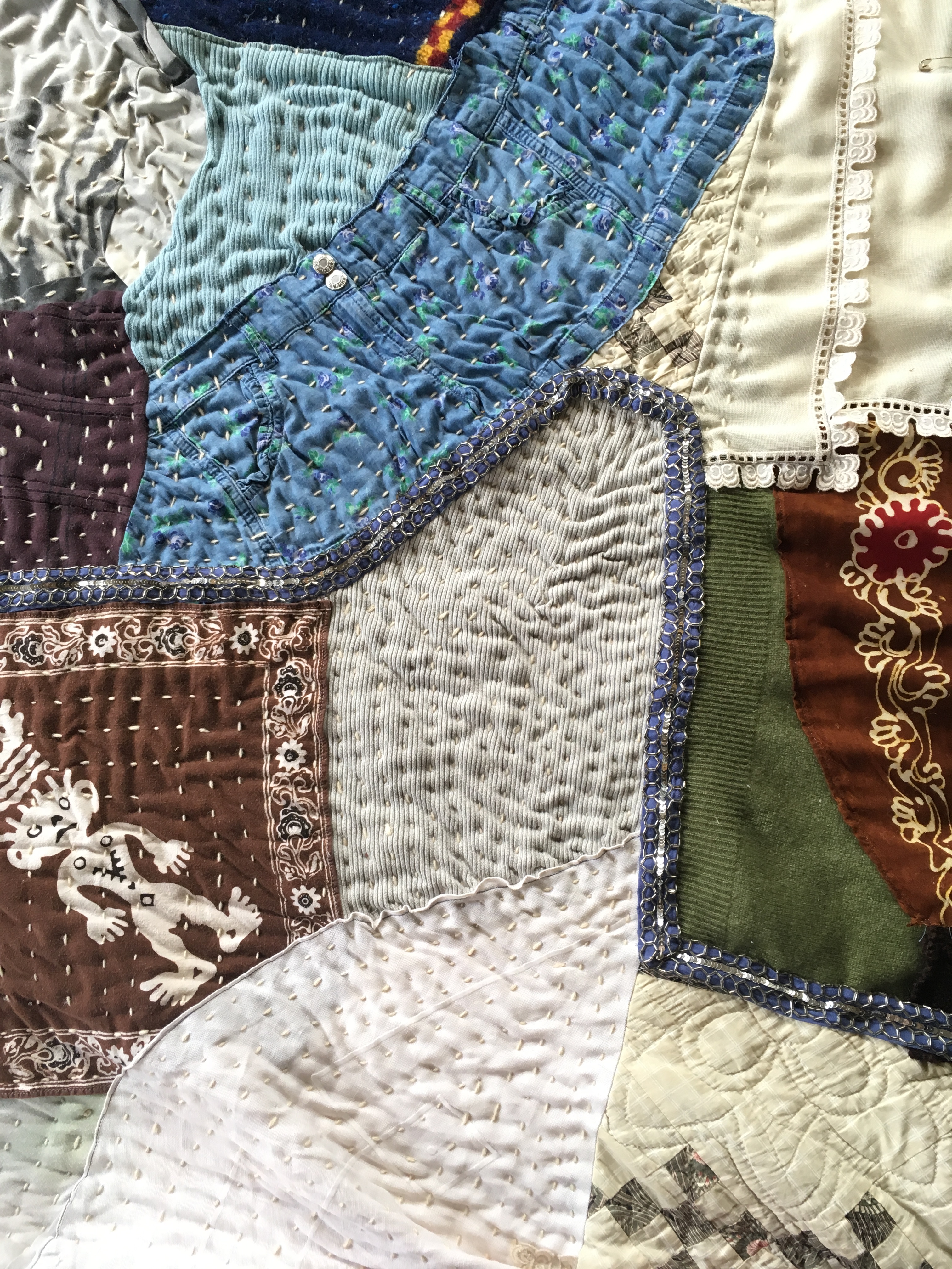 I continued for many more years making many, many, many, more quilts until the death of my parents. To absorb that inevitable loss, I incorporated all of their clothing and textiles into my process creating family heirlooms that I hold dear to this day. Experiencing the healing potential of using meaningful textiles started my venture making quilt products for others using their personal materials of memory.